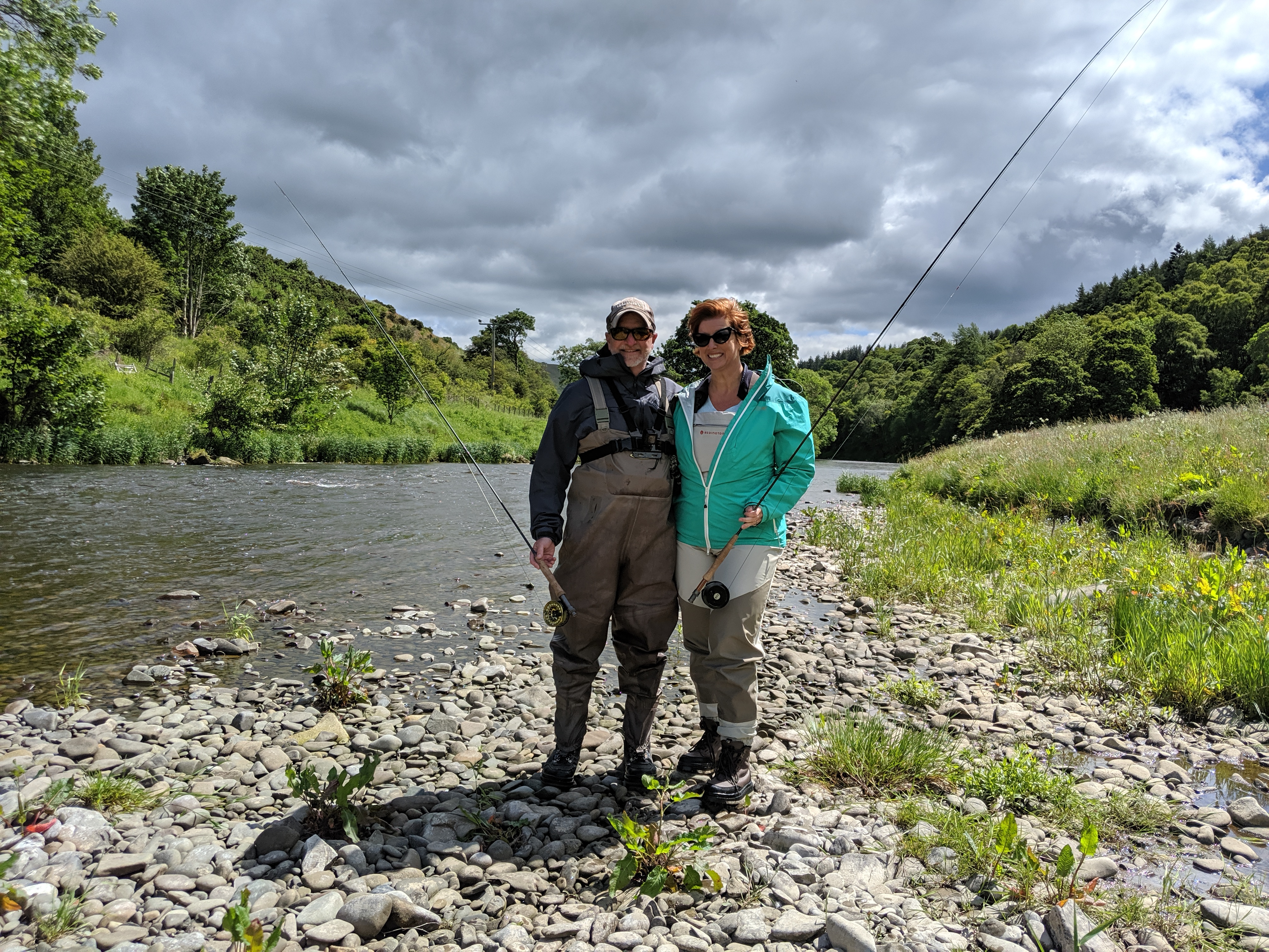 Me and GBoy, setting out to fly-fish on the River Tweed.