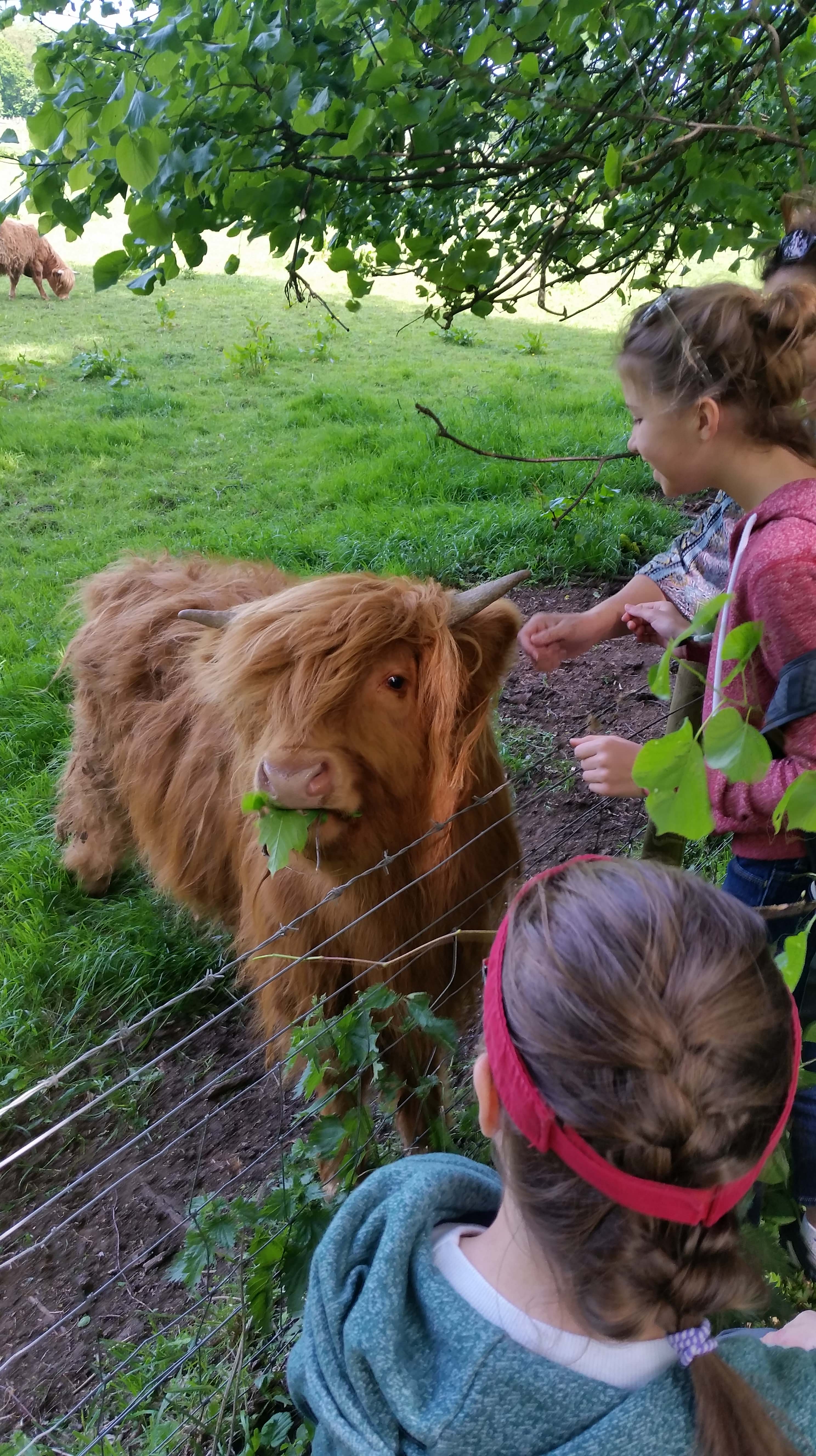 The Smith-Shropshire crew walking the fields of the battle of Culloden, where many of my ancestors were killed.(ClanRanald of the MacDonald of the Isles). And (below) feeding baby Heiland Coos at Pollock House, near Glasgow.